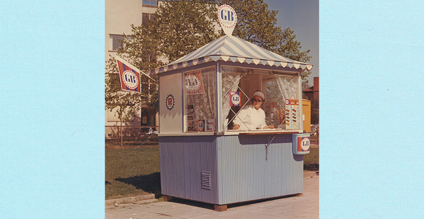 På 1960-talet var glasskiosken given i den svenska stadsbilden. Foto: Okänd, ur Unilever Sveriges arkiv hos Centrum för Näringslivshistoria.